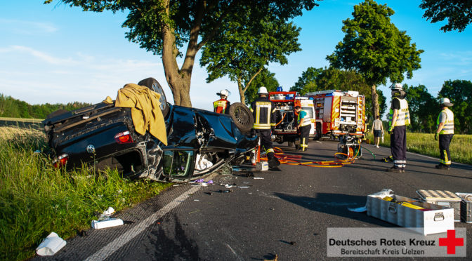 Eine 21-jährige Fahrerin war mit ihrem Kleinwagen aus Richtung Uelzen kommend nach rechts von der Fahrbahn abgekommen, mit einem Baum kollidiert und bliebt nach über 50 Metern auf dem Dach liegen.