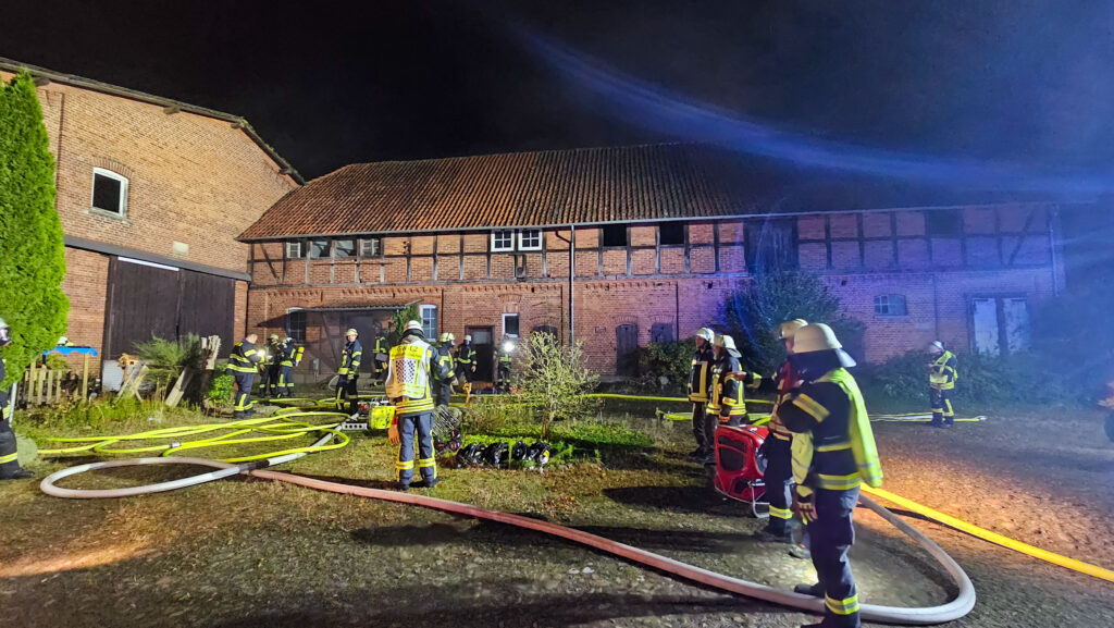 Am Montagabend, dem 06. Oktober, wurde es für die Feuerwehren aus Hanstedt II, Oldenstadt und Rätzlingen ernst – zumindest fast. Ein Wohnungsbrand mit Menschenleben in Gefahr, dessen Flammen drohten, auf eine angrenzende Scheune überzugreifen bildete die Lage. Mehrere Personen galten als vermisst, einige Verletztendarsteller mussten aus dem Gebäude gerettet werden. Als plötzlich einige dieser Darsteller zu einem echten Einsatz nach Bad Bevensen abrücken mussten, übernahmen kurzerhand Übungspuppen ihre Rolle. Die Abläufe blieben trotzdem realitätsnah.