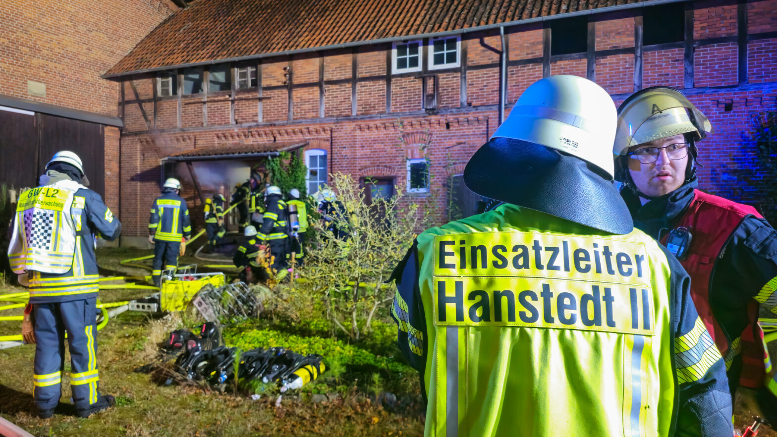 Erst sind mehrere Sirenen zu hören, dann dumpfe Rufe und das durchdringende Piepen mehrerer Rauchmelder. Sie hallen am Montagabend gegen 19:30 Uhr durch den Ortskern von Hanstedt II, einem Ortsteil der Hansestadt Uelzen. Dichte Rauchschwaden ziehen aus den Fenstern und unter dem in die Jahre gekommenen Altbaudach eines Wohn- und Wirtschaftsgebäudes im Hanstedter Ring hervor. Während wenige Minuten nach dem Alarm die ersten Fahrzeuge eintreffen, macht sich der Einsatzleiter der Hanstedter Wehr zur Erkundung auf. An diesem Abend hat der stellvertretende Ortsbrandmeister Gerrit Mensching-Buhr diese Funktion, und damit die Verantwortung über die gesamte Einsatzstelle, inne.